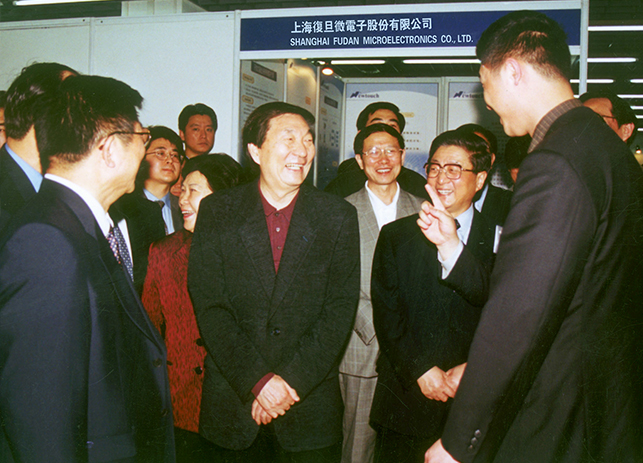 • 2001年4月17日,在上海張江開發區浦東軟件園參展的展示會上,時任國務院總理朱镕基、市委書記黃菊視察了復旦微電子展位,并聽取公司總經理施雷的工作匯報。
